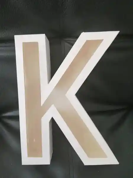 Caja en forma de letra K en color blanco, tapa con ventana en acetato, Medidas: 30 cm de largo y 6 cm de profundidad. Ideal para dulces, fresas decoradas y botellas pequeñas.