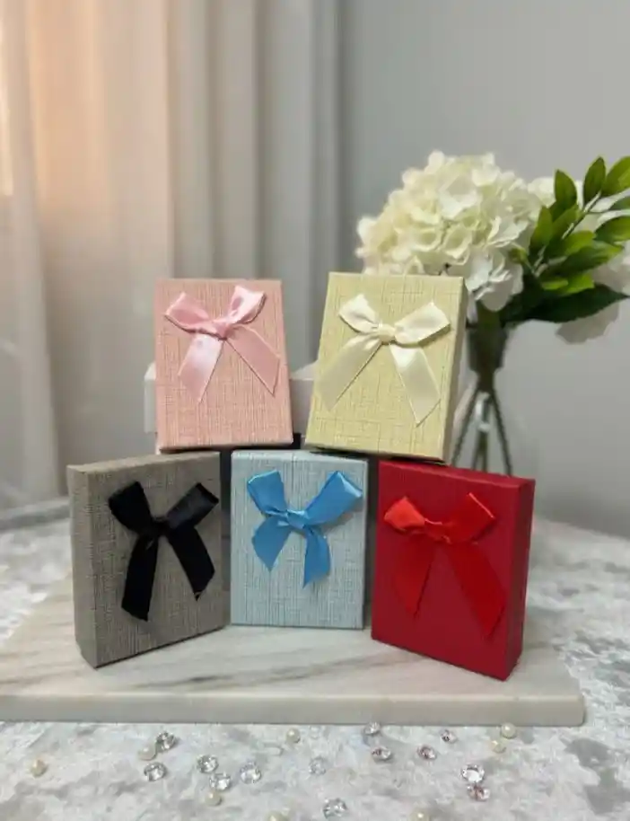 PUEDE LLEGAR EN CUALQUIERA DE LOS COLORES QUE SE OBSERVAN EN LA FOTO Elegante y resistente caja estuche ideal para presentar joyas de mayor tamaño con una excelente presentación. Su formato amplio permite guardar collares, pulseras, relojes, conjuntos de joyas o accesorios especiales. Diseño con acabado texturizado y moño decorativo que realza el valor del regalo. Características: Tipo: caja estuche para joyas Medidas: ancho 7 cm x largo 9 cm Diseño elegante con relieve y lazo decorativo Ideal para collares, pulseras, relojes o sets de joyas Perfecta para regalos, eventos especiales o uso comercial Una presentación cuidada y sofisticada que acompaña y destaca cualquier joya.
