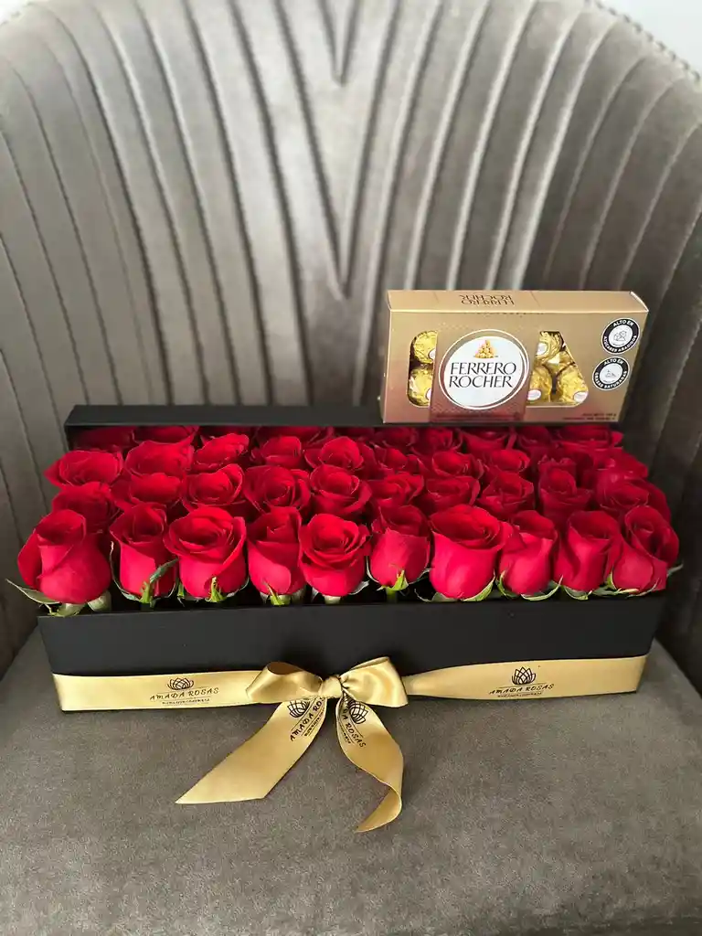 "Sumérgete en un mar de amor con nuestra caja rectangular con 50 a 55 rosas premium. Cada flor es una promesa de belleza eterna y pasión desbordante. Esta cautivadora colección de rosas premium despierta los sentidos y deslumbra los corazones. El regalo perfecto para celebrar momentos inolvidables y transmitir emociones intensas. ¡Haz que su corazón florezca con cada rosa!"