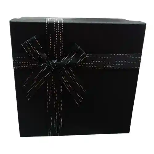 CAJA FINA REGALO METALIZADA CUADRADA COLOR NEGRA GRANDE, MEDIDAS: 18.5ALTO X 18.5ANCHO X 9CM PROFUNDIDAD