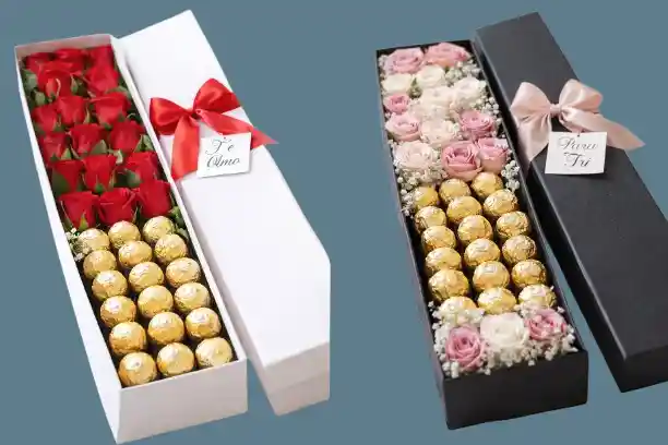 ❤️🌹 Caja larga de lujo que enamora a primera vista 🌹❤️ Sorprende con esta hermosa caja en cartón industrial, elegante y resistente, que contiene 24 rosas rojas de tallo largo 🌹✨ acompañadas de deliciosos chocolates Ferrero 🍫💛 formando un espectacular corazón. Un detalle perfecto para expresar amor, pasión y exclusividad 💝🔥 ideal para cumpleaños, aniversarios o momentos especiales. 🎁 Incluye decoración premium 💌 Tarjeta personalizada 🚚 Entrega a domicilio ✨ Un regalo que no se olvida… ¡hazla(o) sentir único(a)! 💘