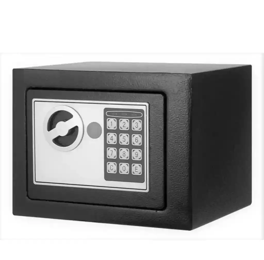 Mantén tus objetos de valor protegidos con esta caja fuerte digital de seguridad pequeña, ideal para resguardar documentos, joyas, dinero y pasaportes. Su cerradura electrónica confiable permite el acceso mediante una clave numérica y, en caso de olvido o batería agotada, se puede abrir con una llave de respaldo. Además, cuenta con un sistema de bloqueo temporal que impide accesos no autorizados tras varios intentos fallidos, brindando mayor seguridad y tranquilidad. Ficha Técnica: • Material: Acero resistente • Dimensiones: • Externas: 23 cm (largo) x 17 cm (ancho) x 17 cm (alto) • Internas: Aproximadamente 22 cm x 16 cm x 16 cm • Capacidad: 4.2 litros • Sistema de seguridad: • Teclado digital programable con código de 3 a 8 dígitos • Llaves de emergencia cilíndricas (2 incluidas) • Bloqueo de seguridad tras intentos fallidos • Función de reset para restablecer código • Alimentación: 4 pilas AA (incluidas en algunos modelos) • Instalación: Orificios para anclaje en pared o piso (tornillos incluidos) • Uso recomendado: Hoteles, oficinas, hogares y negocios pequeños • Peso: Aproximadamente 2.7 kg ** _Para defectos de fábrica o retractos: \_Por favor revise el producto apenas lo reciba y antes de usarlo. No aplican ley de retracto o defectos de fábrica luego de usar el producto. Se manejan máximo 5 días para reportar defectos de fábrica (por ejemplo, producto funciona mal, piezas faltantes, rotas, etc). Para hacer efectiva la devolución el producto debe devolverse con el empaque original, el cual debe estar en buen estado, incluir todos los documentos y las partes completas y sin daños.