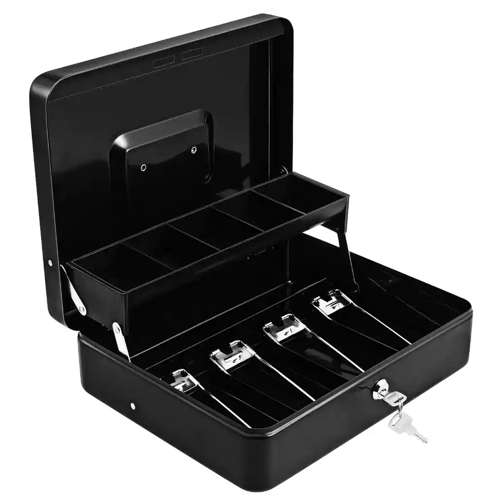 Caja Organizadora de Dinero con Cerradura y Llaves La Caja Organizadora de Dinero es una solución segura y práctica para almacenar dinero en efectivo, joyas, relojes y otros objetos de valor. Su sistema de cerradura con llave brinda mayor protección y tranquilidad, ideal tanto para el hogar como para oficinas, comercios o viajes. Incorpora una bandeja interna en voladizo que se despliega al abrir la caja, permitiendo una organización eficiente y un acceso rápido al contenido. Gracias a sus múltiples compartimentos, mantiene todo en orden y facilita la clasificación de monedas, billetes u objetos pequeños. Fabricada en polipropileno resistente, es ligera, duradera y fácil de transportar gracias a su asa plegable integrada, lo que garantiza la protección de tus pertenencias dondequiera que vayas. Especificaciones Técnicas Tipo: Caja organizadora de dinero / caja de seguridad Sistema de seguridad: Cerradura con llave Material: Polipropileno (PP) Color: Negro Bandeja interna: En voladizo Compartimentos: • 5 compartimentos con divisores Bisagras internas: • 4 bisagras resistentes con resorte Mecanismo de cierre: • Giro de llave (izquierda para cerrar / derecha para abrir) Asa: Plegable Uso recomendado: Hogar, oficina, comercio y viajes Dimensiones del Producto Ancho: 24 cm Largo: 30 cm Alto: 9 cm Beneficios del Producto • Mayor seguridad para dinero y objetos de valor • Organización eficiente con múltiples compartimentos • Acceso rápido y práctico al contenido • Diseño compacto y portátil • Asa plegable para fácil transporte • Incluye dos llaves para mayor respaldo • Material resistente y duradero Contenido del Paquete • 1 Caja Organizadora de Dinero • 2 Llaves de seguridad Garantía Este producto cuenta con 30 días de garantía por defectos de fabricación. Política de Retracto Aplica el derecho de retracto dentro de los 5 días hábiles posteriores a la entrega. El producto debe devolverse sin uso, en perfecto estado y con su empaque original intacto. Nota Importante • Para aplicar garantía o retracto se deben enviar fotos y/o videos que evidencien claramente el estado del producto. • La garantía no cubre daños por golpes, humedad, mal uso o manipulación indebida. • Las imágenes son ilustrativas y pueden estar renderizadas en alta definición. • Debido a diferentes lotes de fabricación, el producto real puede presentar ligeras variaciones en color o detalles, sin afectar su funcionamiento.
