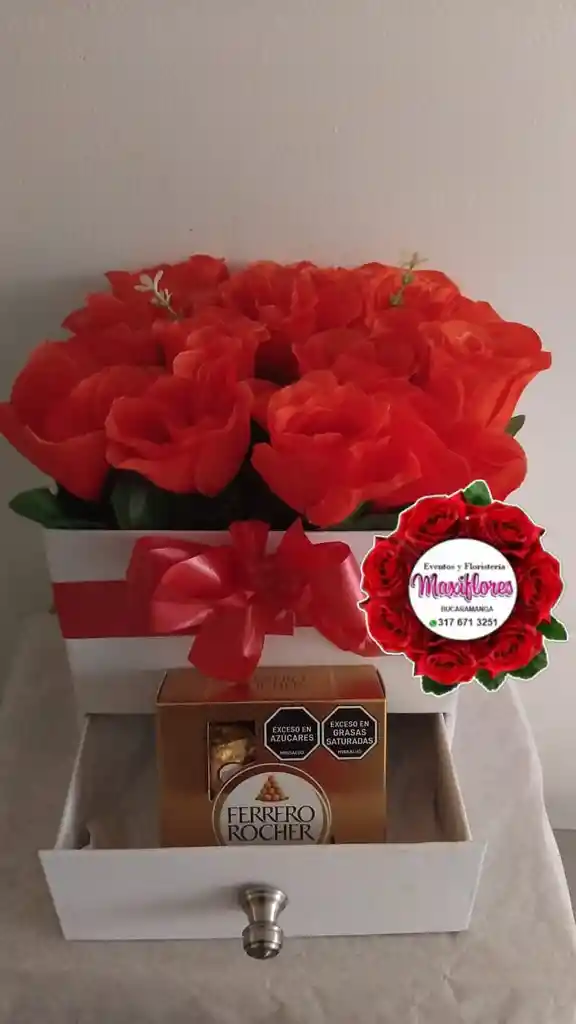 CAJA GABETERA CON ROSAS PRESERVADAS + CAJA CON CHOCOLATES