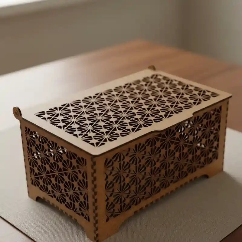 Caja Grande de madera con diseño de flores
