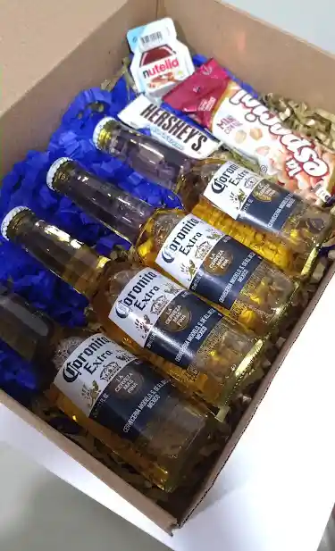 4 CERVEZAS 1 HERSHEY PEQUEÑO MANI NUTELLA MINI CAJA DECORADA TARJETA