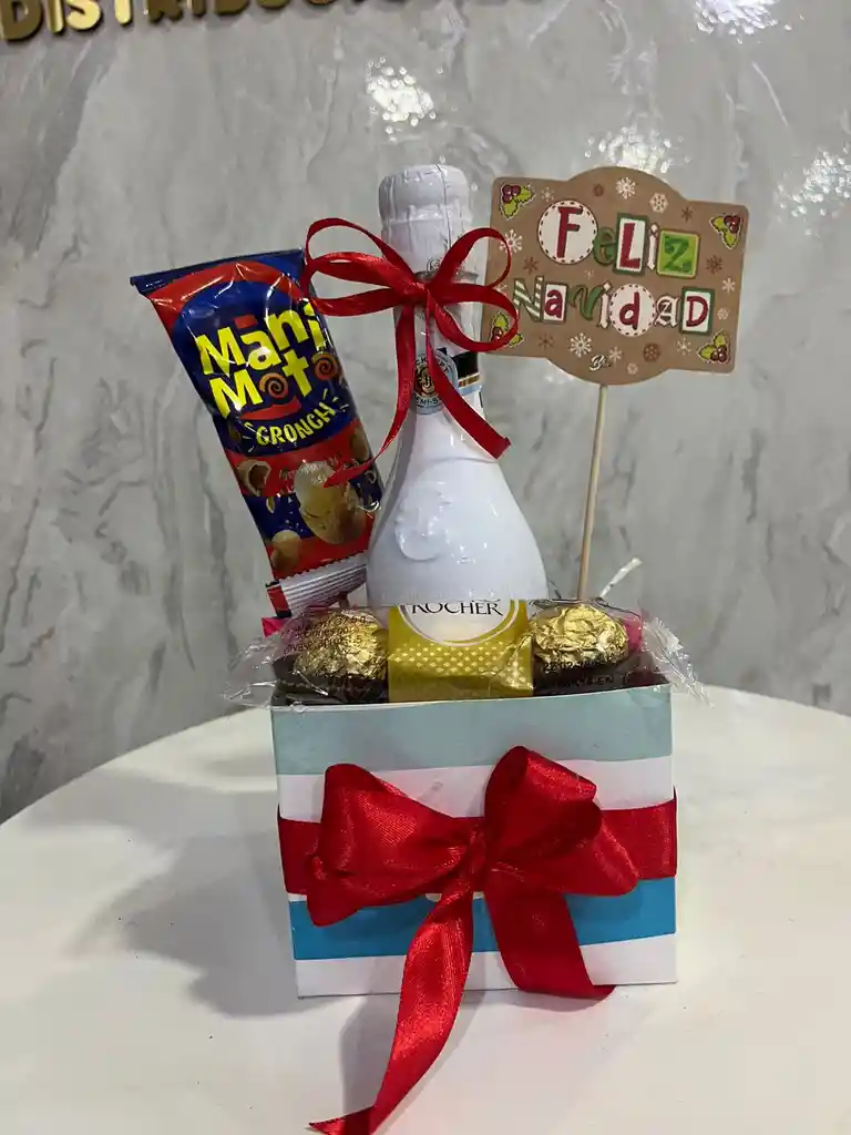 Caja 10x10 con botella JP pequeña, Ferrero x 3, Mani.