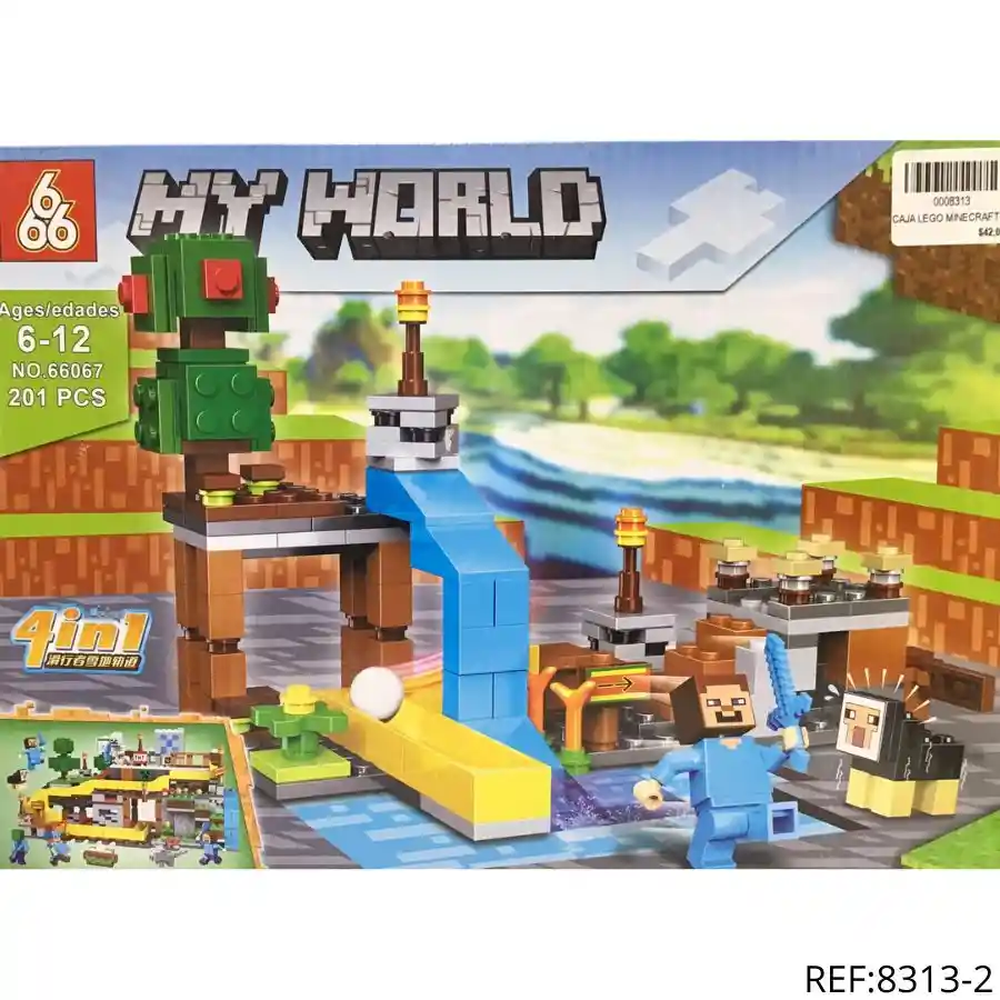 Set de bloques estilo Minecraft con 201 piezas. Arma 4 escenarios distintos y deja volar tu imaginación. Ideal desde 6 años.