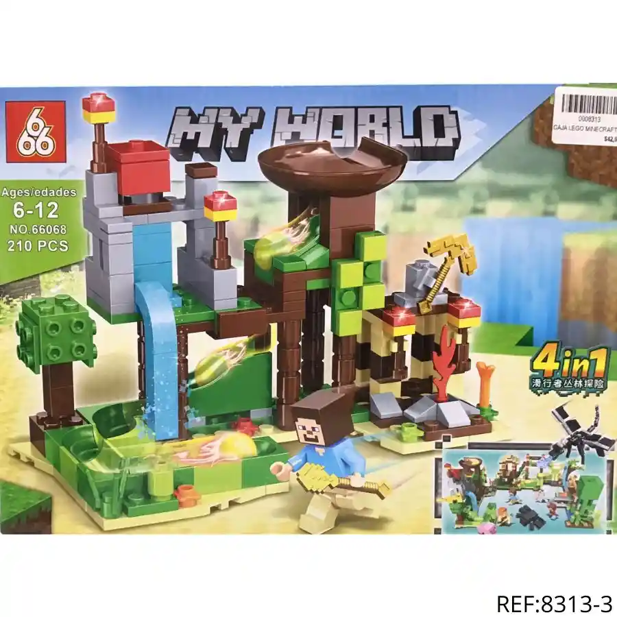 Set de construcción tipo Minecraft con 210 piezas. Arma 4 escenarios distintos. Ideal para niños de 6 a 12 años.