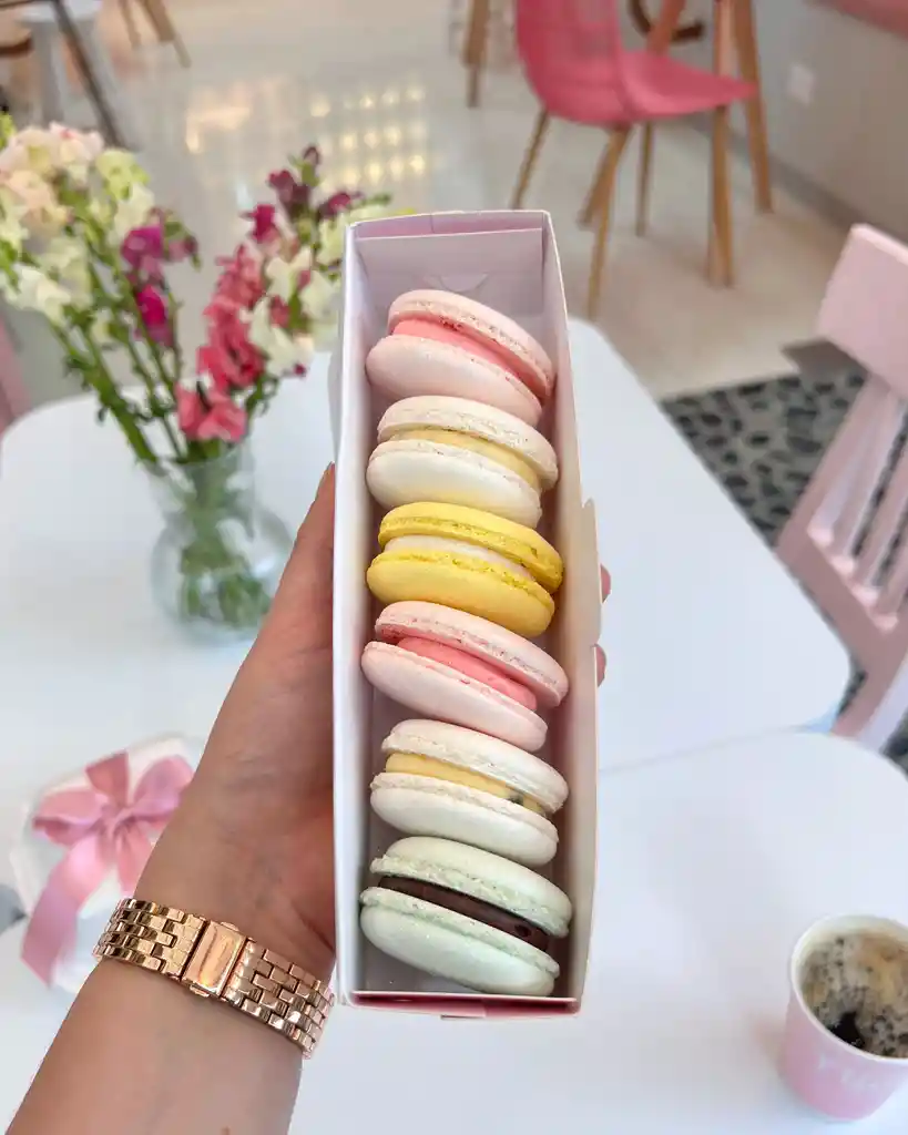 Cajita de los Macarons más perfectos y delicados para regalar o regalarte! Contiene 6 macarons grandes hechos 100% con harina de almendras en sabores variados de temporada Vienen en una caja super linda perfecta para regalo