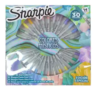 Caja Marcadores Sharpie Misticos Edicion Limitada por 20 Marcadores Punta fina + 10 Ultra Fina + 3 Hojas para Colorear