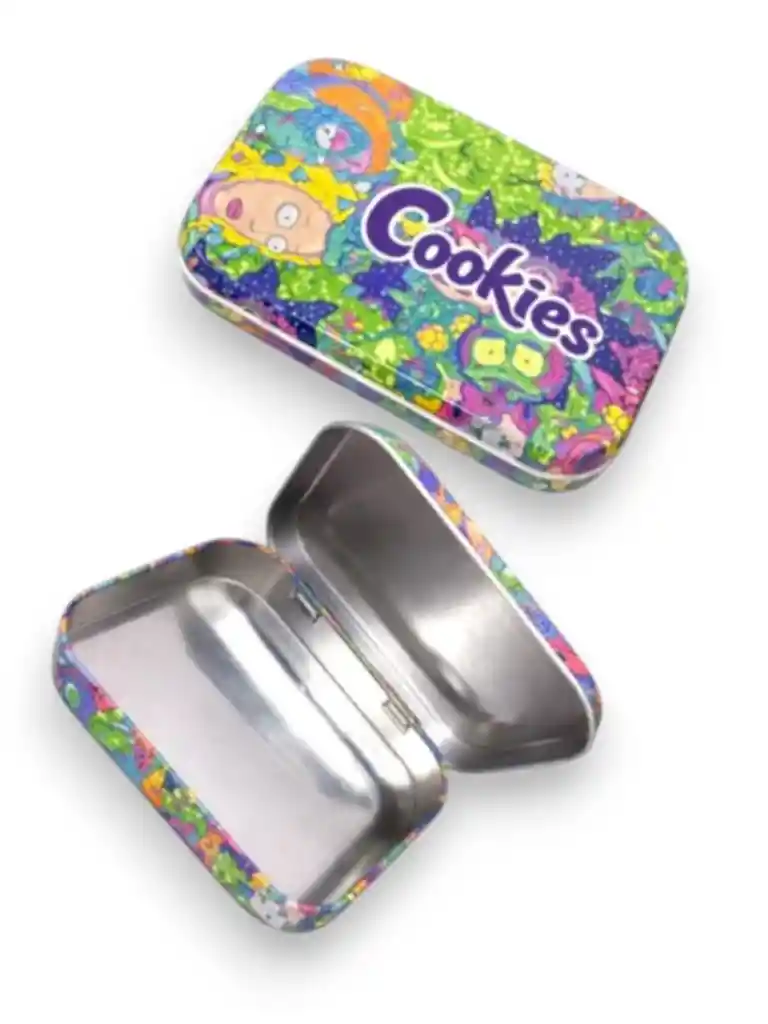 Guarda tus accesorios con estilo en esta caja metálica Cookies 🍪 con diseño llamativo.