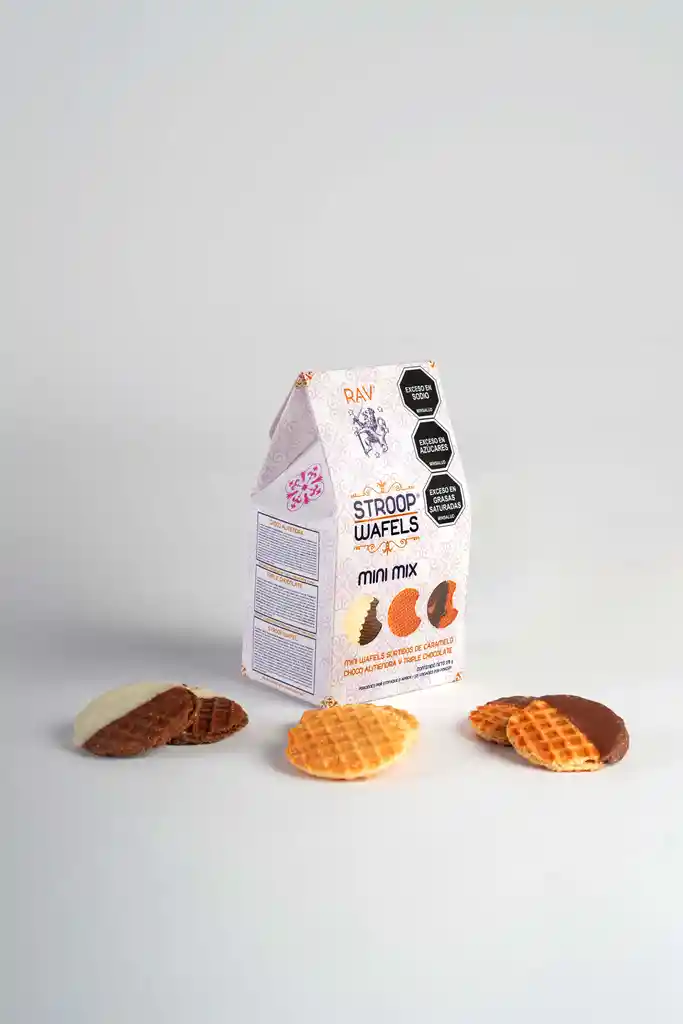 12 Mini Stroop Wafels surtidas de Caramelo, Choco Almedra y Triple Chocolate x 175 gramos