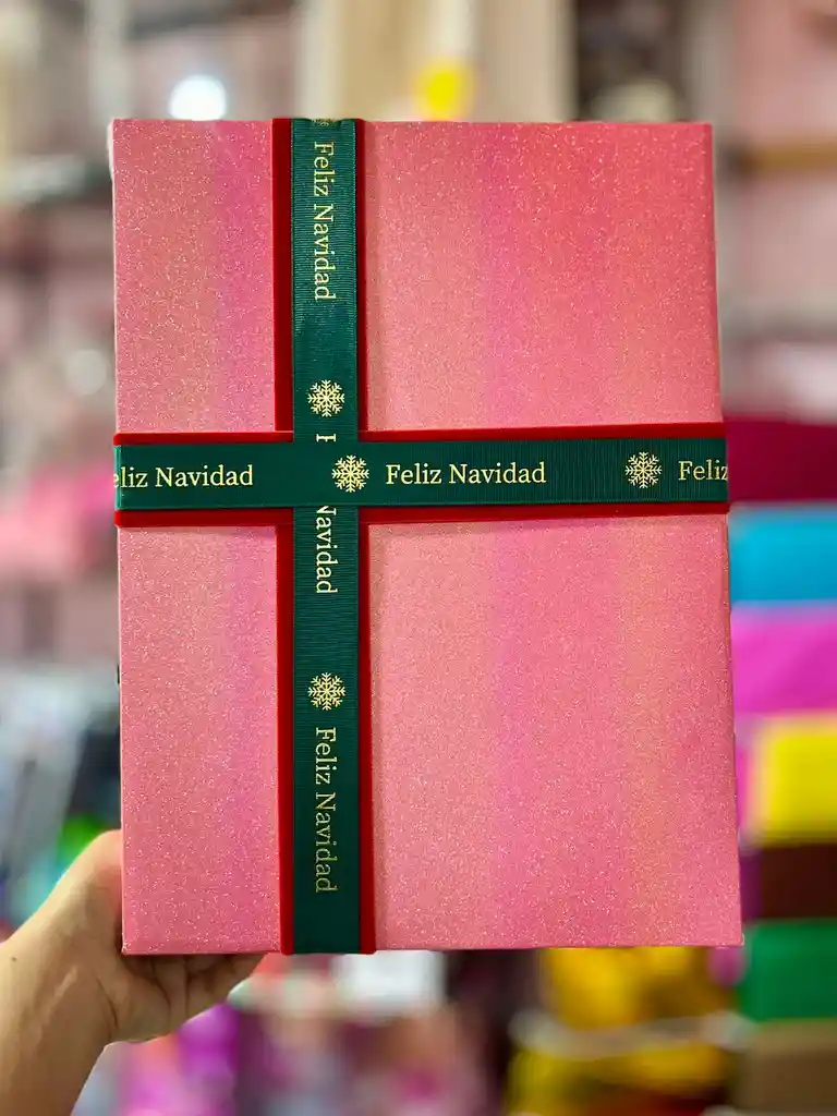 CAJA MIRELLA ROJA GRANDE DECORADA CON CINTAS NAVIDEÑAS MEDIDAS: 25X34 CM