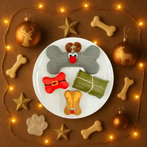 Este año la tradicional Caja Navidog contiene todas las recetas de ternera: Un tamal perruno famoso desde 2014, una deliciosa torta Noel, una imperdible torta Reno y un juguete Hueso Reno con pito interior. Lo recibes todo empacado en una hermosa caja de edición especial ! Los alimentos se entregan CONGELADOS, deben REFRIGERARSE INMEDIATAMENTE una vez recibidos y consumirse antes de 5 días.