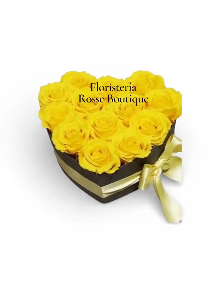 Contiene: Caja de Forma de corazon negra, con 12 rosas amarillas, incluye decoracion y tarjeta personalizada Es ideal para cumpleaños, agradecimientos, celebraciones o para sorprender con un regalo alegre y sofisticado.