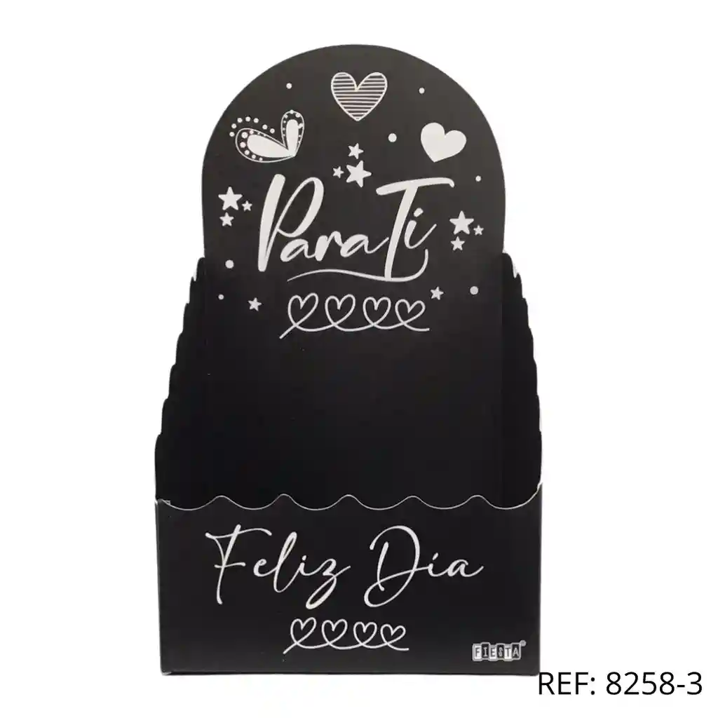 Caja negra elegante con mensaje ‘Para Ti, Feliz Día’, ideal para detalles especiales. 12cmx21cm