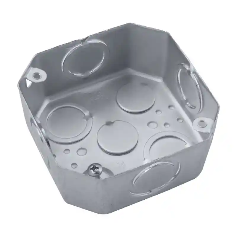 Caja octagonal galvanizada, duradera y adecuada para ambientes donde se requiere resistencia,