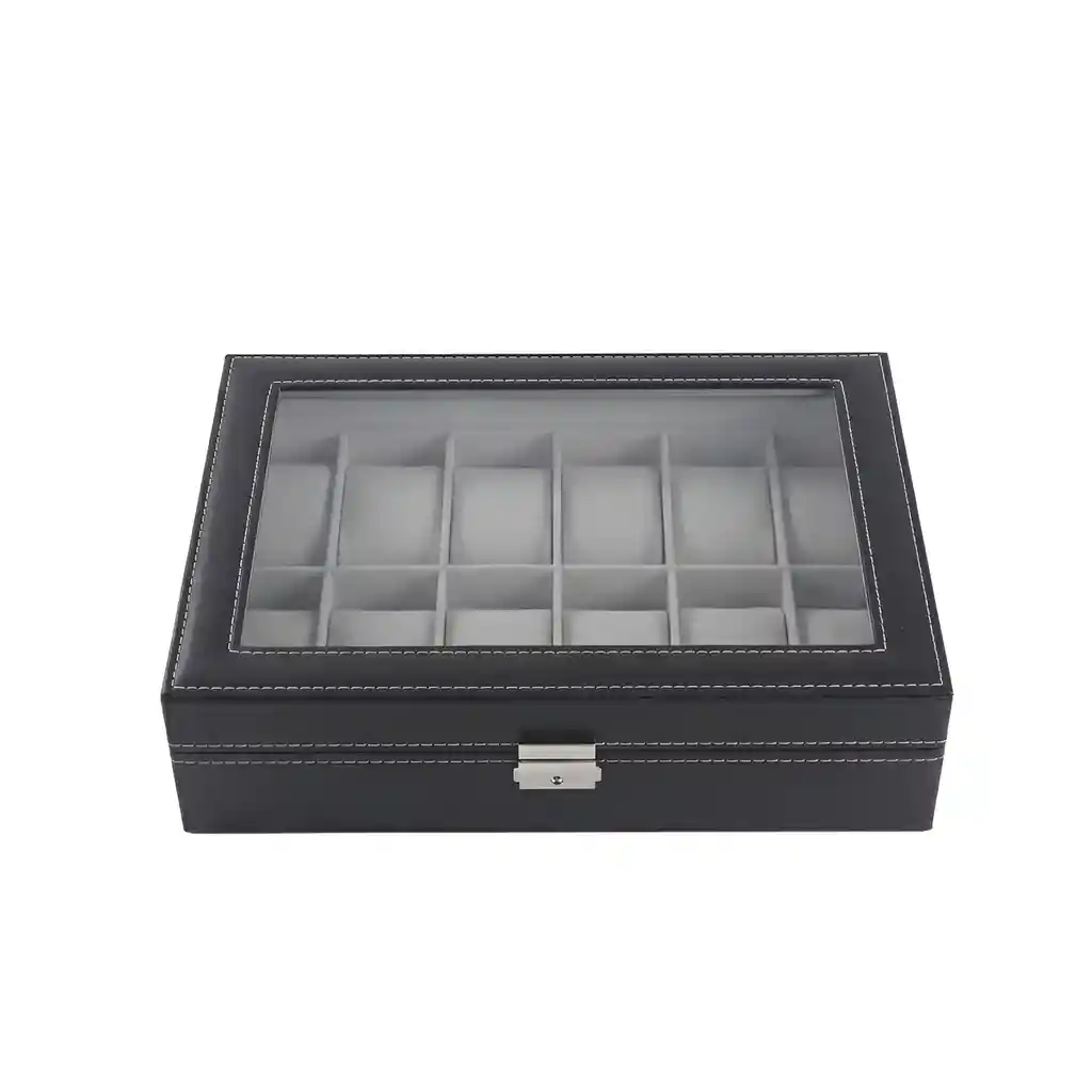 Esta elegante caja organizadora es la solución definitiva para coleccionistas y entusiastas que buscan proteger y exhibir su colección de relojes con un toque de distinción y orden. Fabricada en cuero sintético de alta calidad con costuras blancas de contraste, cuenta con una tapa de vidrio transparente que permite una visualización clara mientras protege sus piezas del polvo y los rayones. Su interior está revestido con un suave forro de gamuza gris e incluye 12 compartimentos con almohadillas acolchadas removibles que se adaptan a diversos tamaños de relojes, desde piezas clásicas hasta smartwatches de gran formato. Equipada con un cierre metálico de seguridad, esta caja no solo optimiza el espacio en su tocador o mesa de noche, sino que también garantiza una conservación impecable y una presentación profesional para su colección personal. FICHA TÉCNICA Producto: Caja Organizadora de Relojes Capacidad: 12 compartimentos independientes Material Exterior: Cuero sintético (PU) premium Material Interior: Forro de tela tipo gamuza suave Material de la Ventana: Vidrio templado transparente Dimensiones: 30 cm de largo x 20 cm de ancho x 8 cm de alto Color Exterior: Negro con costuras blancas decorativas Color Interior: Gris Tipo de Cierre: Hebilla de metal con cerradura (seguridad básica) Accesorios Incluidos: 12 almohadillas de soporte removibles Uso: Almacenamiento, protección y exhibición de relojes y joyería Garantía: 1 mes por defectos de fábrica POLÍTICA DE GARANTÍA Y RETRACTO Este producto cuenta con 1 mes de garantía por defectos de fábrica (como costuras sueltas o vidrios mal ajustados); por favor verifique el estado del producto al recibirlo, ya que no aplica garantía por golpes o roturas de vidrio posteriores al uso. Dispone de un máximo de 5 días para reportar novedades. Para cualquier devolución por retracto, es indispensable entregar el producto en su empaque original en perfecto estado, sin señales de uso y con todas sus piezas completas.