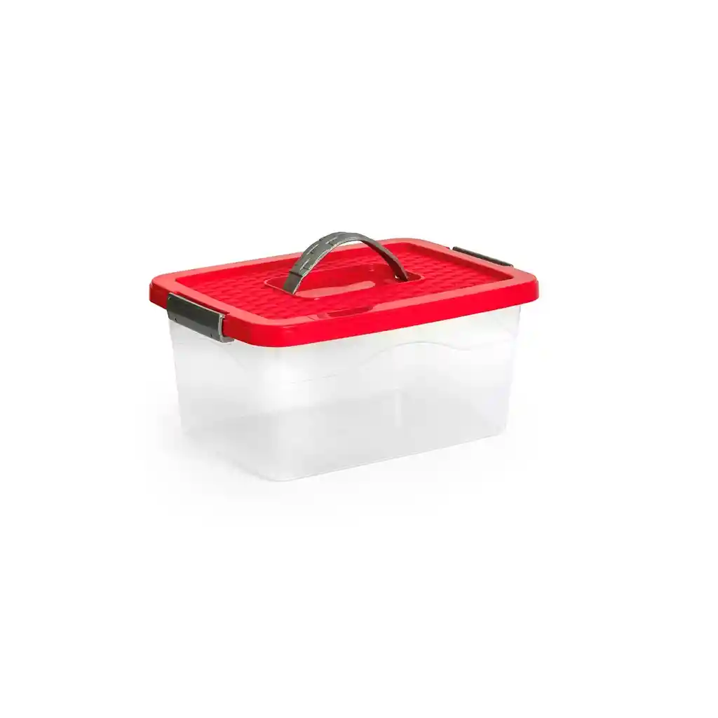 Elaborada en la Polipropileno de alta calidad. Con manija y tapa de color. Ideal para mantener los ambientes ordenados . Diseño transparente para fácil visualización. Colores surtidos rojo y verde. Ideal para almacenar diversos objetos. Material plástico resistente. Ligera y fácil de manipular. Tapa segura para proteger contenido. Perfecta para hogar u oficina. Ahorra espacio y mejora el orden. Fácil de limpiar y mantener. Base firme y estable. La imagen ha sido ambientada; no incluye accesorios adicionales y el color puede variar según la iluminación.