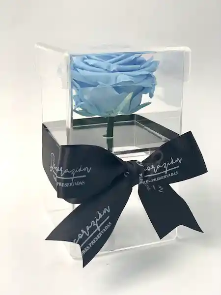 Caja en acrílico con 1 rosa premium natural preservada que dura intacta por meses. Medidas: de 17x10x10cm. Incluye Bolsa de lujo y tarjeta