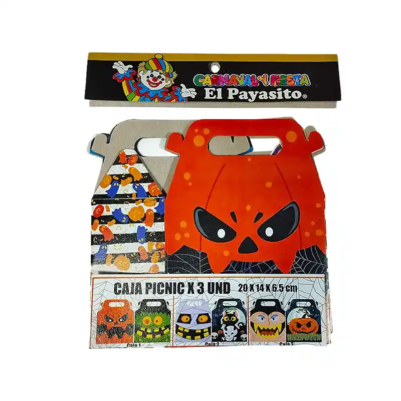 Paquete de 3 cajitas para dulces en halloween, medidas caja: 20x14x6 cm, se envía diseño disponible en inventario