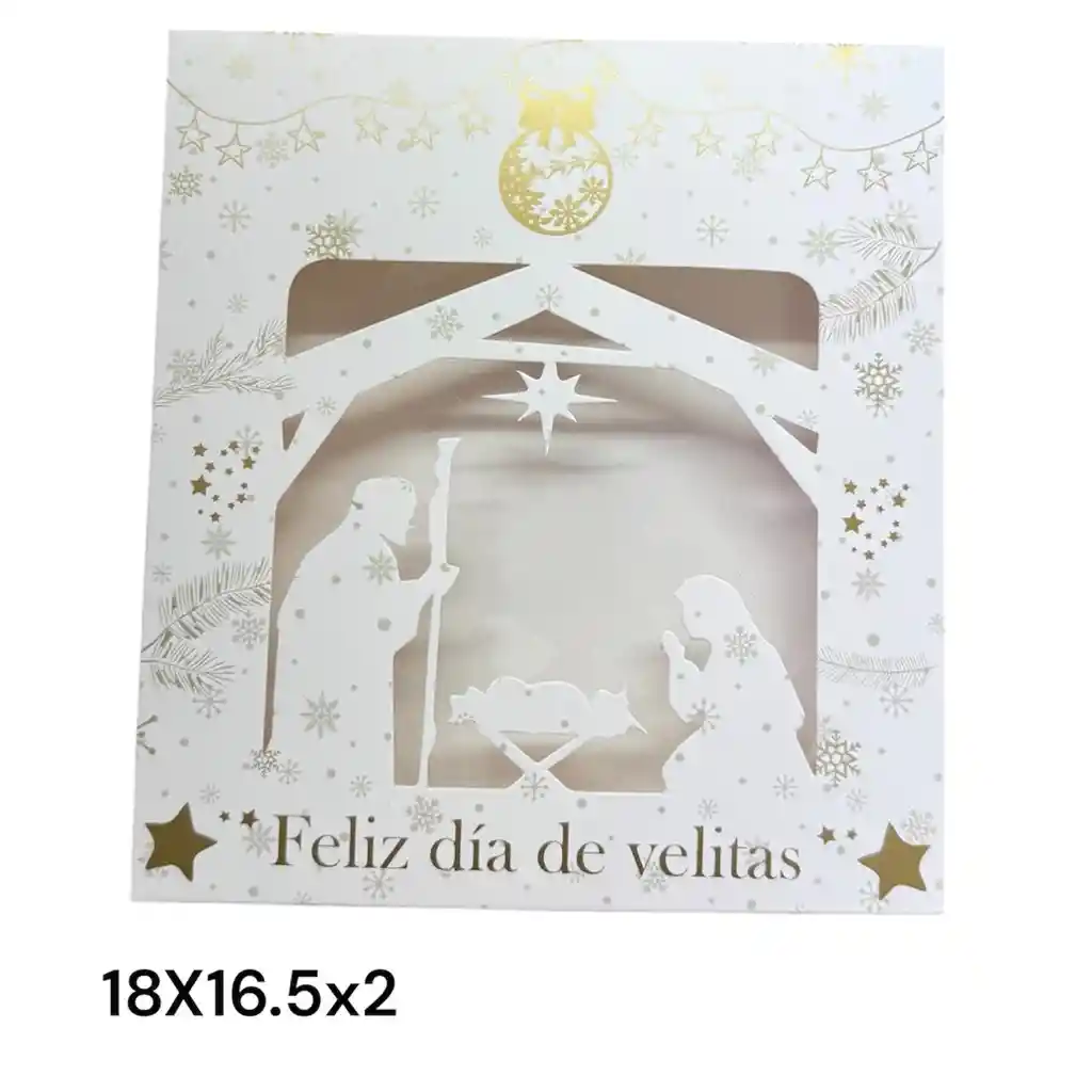 CAJA PARA VELAS NAVIDEÑAS 18X16.5X2 DISEÑO PESEBRE CON ACETATO