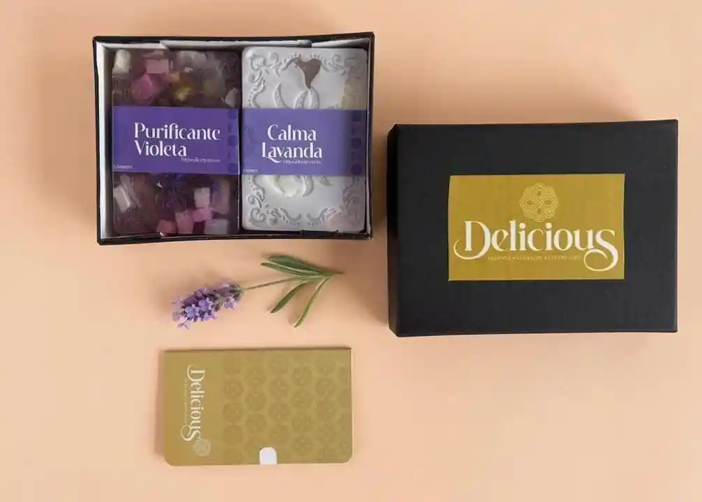 Disfruta aromas suaves y una limpieza natural. Esta caja incluye 2 jabones artesanales elaborados con ingredientes que cuidan y suavizan tu piel.