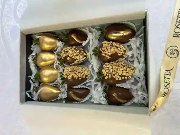 CAJA POR 12 FRESAS, FRESCAS Y DECORADAS.