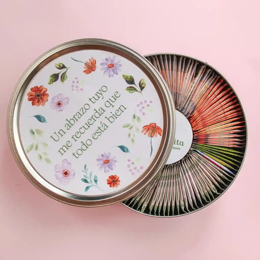 Té con Mamá – Colección Madres ¡Para los amantes del té y los momentos compartidos! Té con Mamá es una caja redonda metálica de edición especial, diseñada con los delicados detalles de nuestra colección Madres. En su interior encontrarás 120 infusiones surtidas de La Teresita, perfectas para disfrutar juntas, compartir en familia o simplemente regalar un instante de bienestar. Esta caja no solo guarda infusiones, sino también historias, pausas y rituales. Y cuando se termine... ¡no se acaba! Puedes reutilizarla como quieras: para seguir guardando tus infusiones favoritas de La Teresita o para conservar tus tesoros más personales. Un detalle hermoso, práctico y lleno de sabor para celebrar a mamá —o a ti misma— con lo que más reconforta: una buena taza de té.