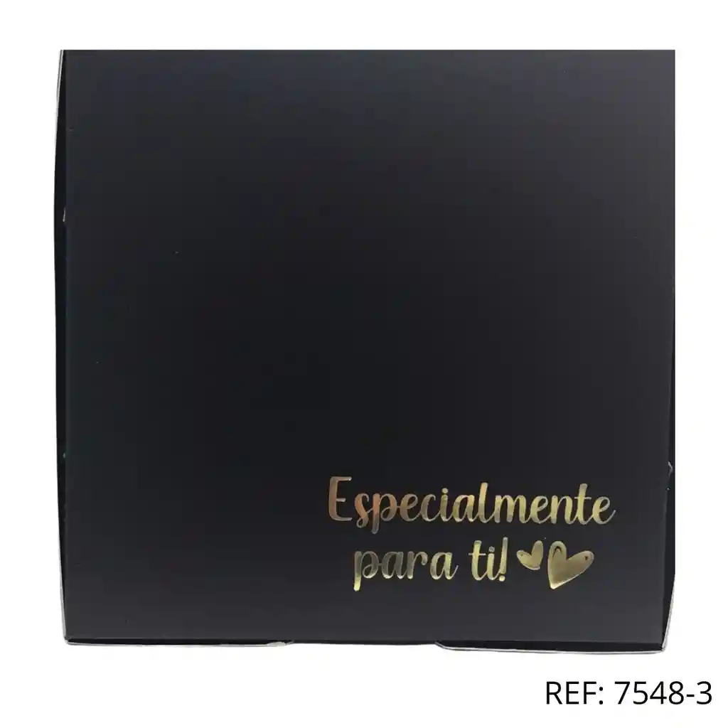 Caja elegante con mensaje dorado, perfecta para detalles especiales y presentaciones de obsequios. 17CMx17CMx7CM aprox