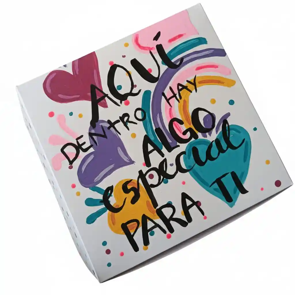 Caja de regalo en cartón ,pintada a mano Alto 10cm Ancho 25*25 cms