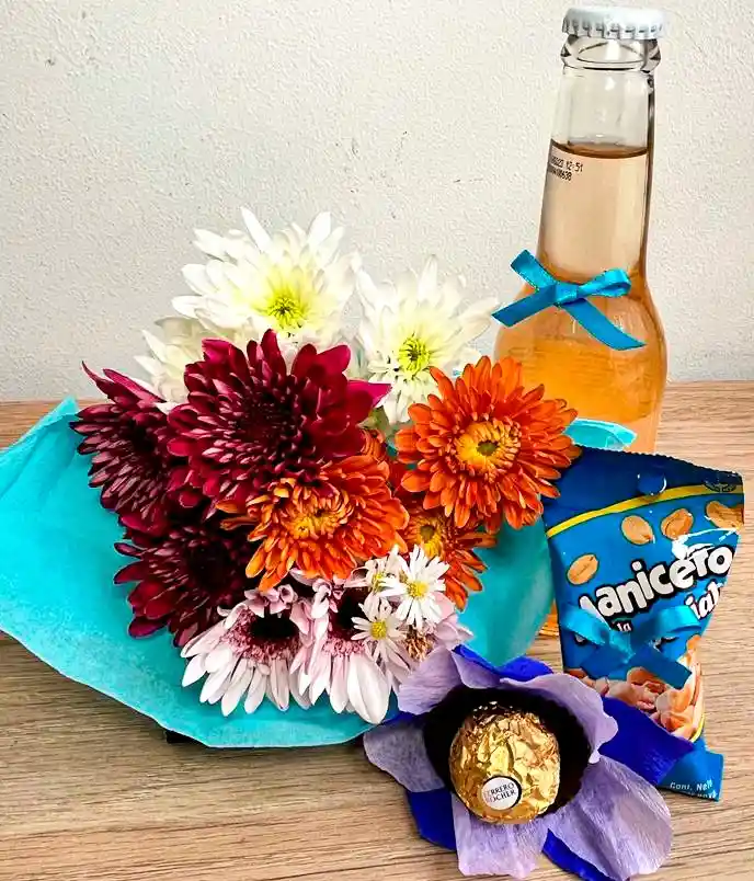 Bouquet de flores Hatsu en botella Chocolate Ferrero Rochelle Mani