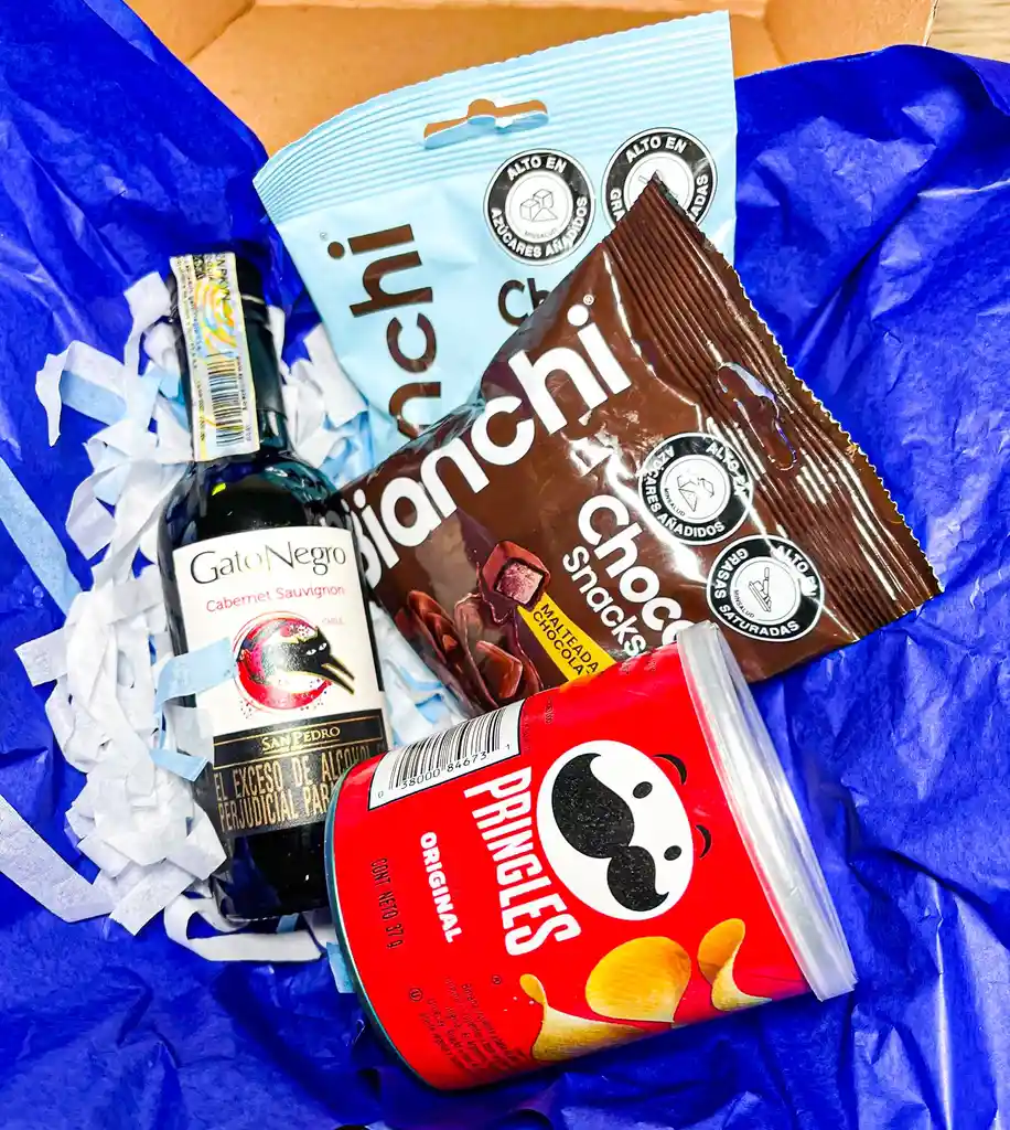 Botella de vino (Presentación mini) Paquetes de snack Papas Pringles