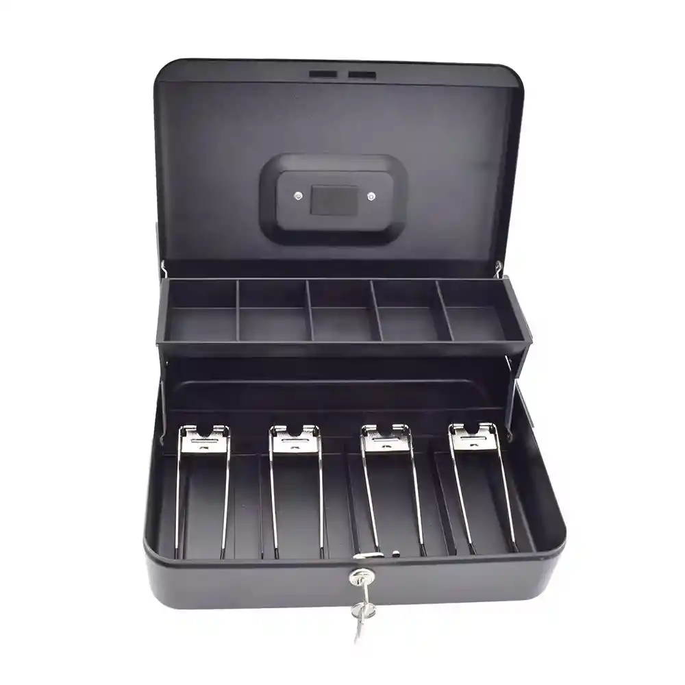 Caja registradora metálica, 4 puestos para billetes y 5 puestos para monedas,