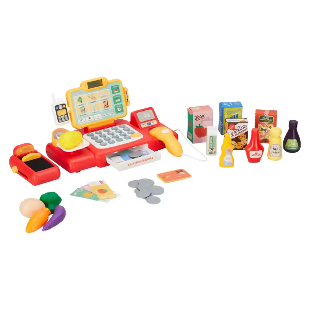 Incluye Caja Registradora Accesorios y Stickers. Ideal Para Mayores de 3 Años. No Incluye Pilas. Medidas: Alto: 14 cm. Ancho: 32 cm. Profundidad: 14 cm. Composición: Polietileno Abs Papel Cartón. ''En Casaideas Encontrarás Artículos de Diseño. Para Vivir Día a Día en un Espacio Que te Haga Feliz.''