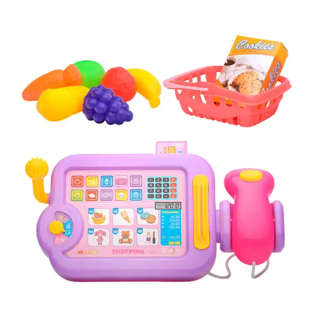 ¡Abre tu propia tiendita y diviértete por horas con este completo y adorable set de caja registradora y mercado! Esta encantadora caja registradora de simulación tiene todo lo necesario para jugar a las compras: botones numéricos para marcar los precios, un escáner de juguete para pasar los productos y un cajón que se abre para guardar el dinero. El set incluye además una canasta de compras, una colorida selección de alimentos, y un juego completo de billetes y monedas para que no falte nada en tu negocio. Es el juguete perfecto para que los niños aprendan sobre los números y el dinero de la manera más divertida, fomentando la imaginación y las habilidades sociales mientras juegan a ser el cajero o el cliente. Ficha Técnica: Material: Plástico ABS Dimensiones: 21 cm x 11 cm x 3 cm Apto para: + 3 Años Referencia: 666-56 Certificado de conformidad: CS-LCO-13233-2021S2/432 ** _Para defectos de fábrica o retractos: \_Por favor revise el producto apenas lo reciba y antes de usarlo. No aplican ley de retracto o defectos de fábrica luego de usar el producto. Se manejan máximo 5 días para reportar defectos de fábrica (por ejemplo, producto funciona mal, piezas faltantes, rotas, etc). Para hacer efectiva la devolución el producto debe devolverse con el empaque original, el cual debe estar en buen estado, incluir todos los documentos y las partes completas y sin daños.