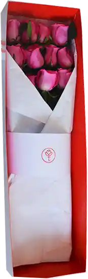 Caja Roja o Blanca R50 con 10 Rosas Fucsia