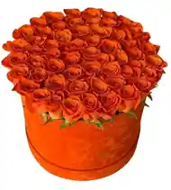 Caja con aprox. 40 rosas naranjas. Nota: La flor puede ser sustituida dependiendo la disponibilidad de color y del producto “Mensaje Personalizado” máximo de 30 caracteres (Dejar el mensaje en el chat, los comentarios no se previsualizan para la tienda por lo que si se dejan allí no podrá ser incluido).