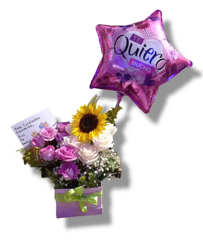 Incluye globo mediano y tarjeta con mensaje personalizado (estas especificaciones las puedesdejar en el chat). Todas nuestras entregan tienen perfume y escarcha.