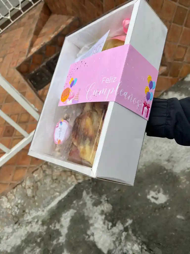 Hermosa caja sorpresa ideal para celebrar cumpleaños de una manera especial. Incluye jugo de naranja, fruta fresca picada (mango, fresa, kiwi, arandanos)galletas de mantequilla, maní, sándwich de pechuga de pollo (tomate, lechuga, queso gratinado), tarjeta personalizada y presentación en el color de la caja decorativa. Perfecta para sorprender a hermanas, amigas o seres queridos. Elaborado con amor por Los Regalos de Juanita