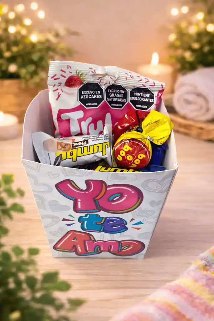 Caja Sorpresa "Yo Te Amo" con 35 Dulces Sorprende con un detalle lleno de amor y sabor. Esta hermosa caja temática "Yo Te Amo" incluye una deliciosa variedad de 35 dulces surtidos + 1 paq de gomas, perfecta para regalar en cualquier ocasión especial. Ideal para cumpleaños, aniversarios, detalles románticos o simplemente para alegrar el día. La presentación es colorida y lista para entregar, convirtiéndola en un regalo práctico y encantador. Incluye: • 35 dulces surtidos + 1 Paq Gomas. • Chocolates, gomas y confitería variada • Caja decorativa temática "Yo Te Amo" • Lista para regalo Un detalle dulce, económico y perfecto para sorprender a esa persona especial.