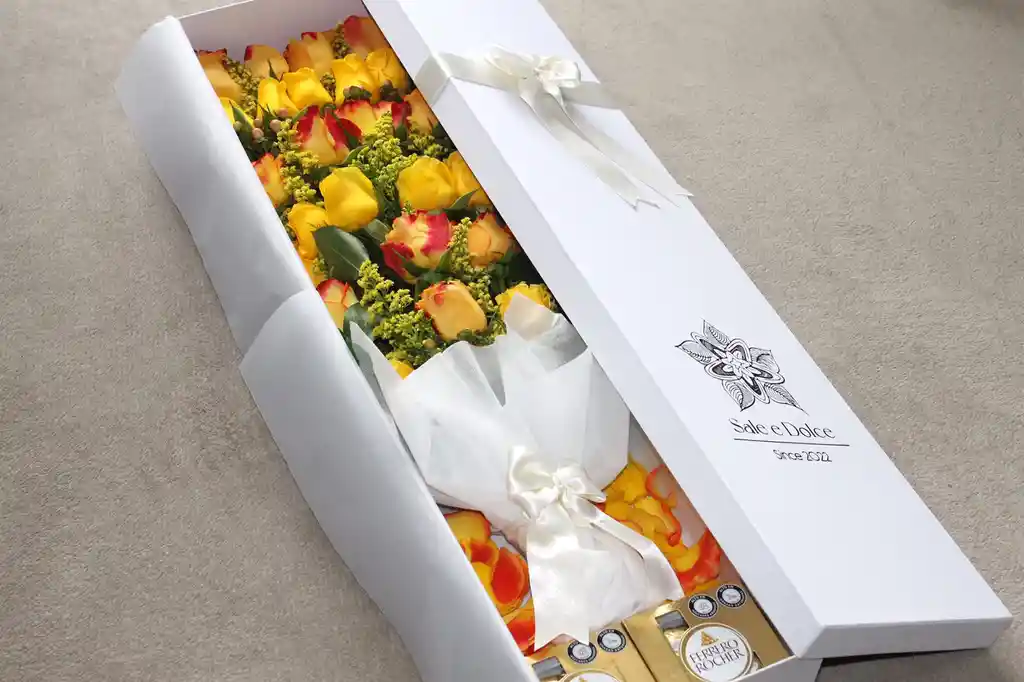 caja toscana en color blanco o negro, rosas, 2 cajas d eferro roche *4, viene incluida la tarjeta de mensaje
