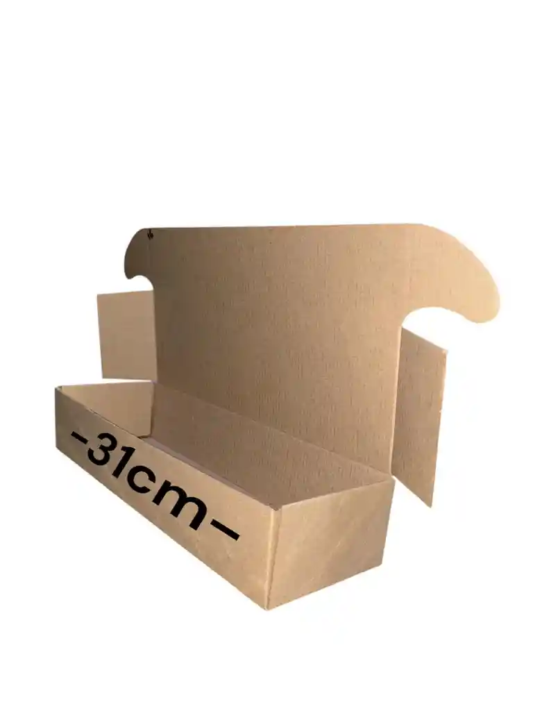 CAJA EN CARTON MICROCORRUGADO ANCHO 10CM, LARGO 31CM Y ALTO 6CM PLEGABLE
