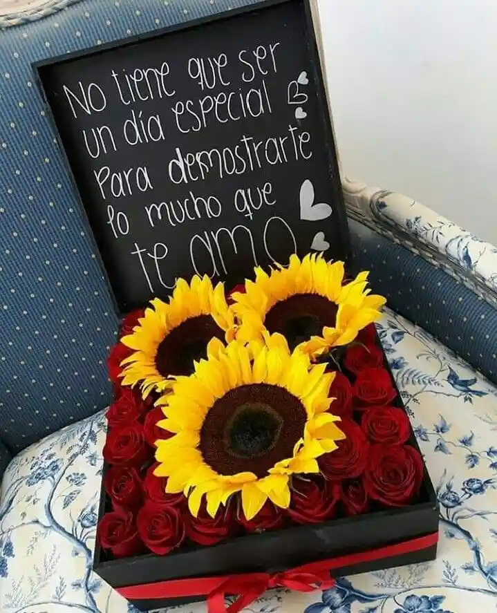 Incluye: Rosas rojas x24, girasoles x3, decoracion y mensaje en tapa