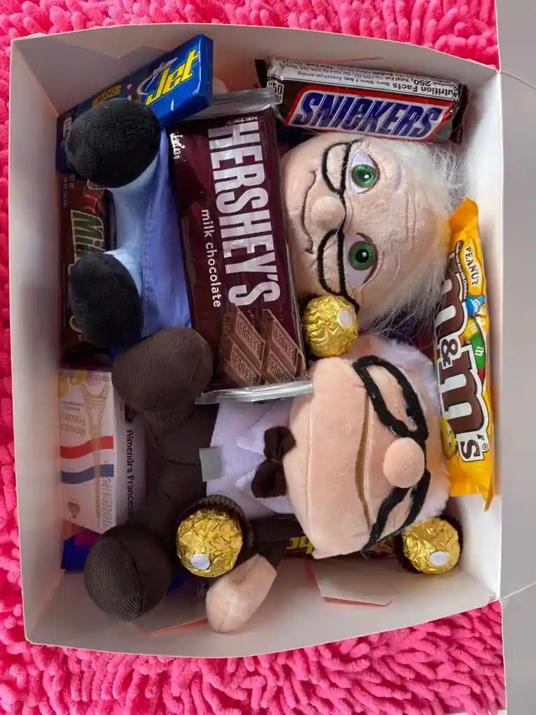 "Peluches 🧸 viejitos medianos Hershey Italo almendras Myms Chocolatina jet Snikers Mikiwey Bombones Ferrero rocher x3 Caja cartón Globo de látex en helio"