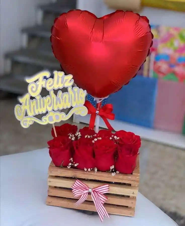 Caja de 8 rosas rojas o del color de su preferencia (según disponibilidad de la tienda) acompañado de tarjeta de regalo y globo metalizado.