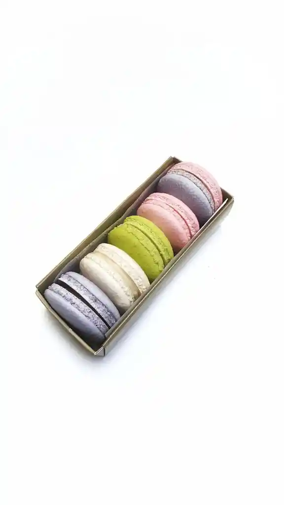 Caja de acetato X 5 macarons para compartir sabores surtidos. No incluye bolsa ni tarjeta