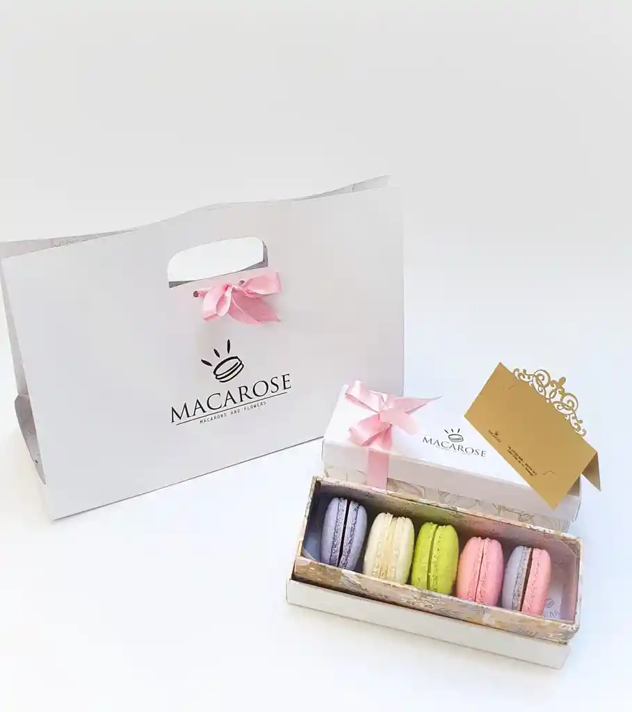 Caja X 8 macarons sabores surtidos para detalle (incluye bolsa y tarjeta)