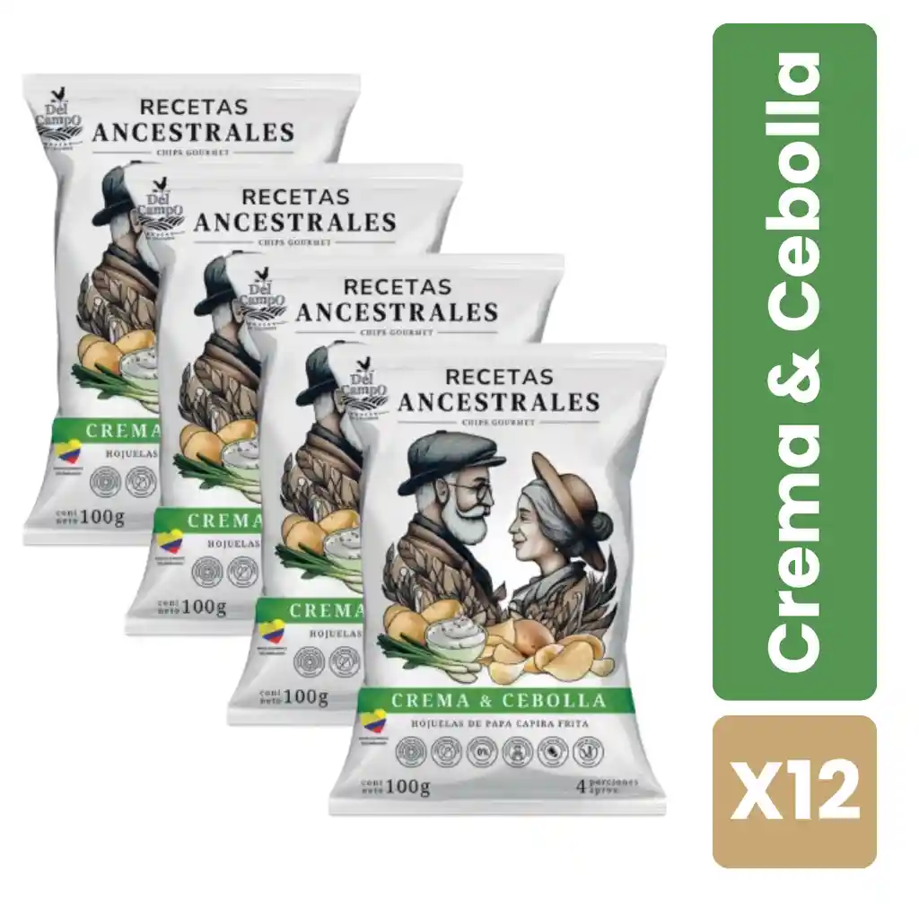 Caja X12 Papas Recetas Ancestrales Sabor Crema Cebolla